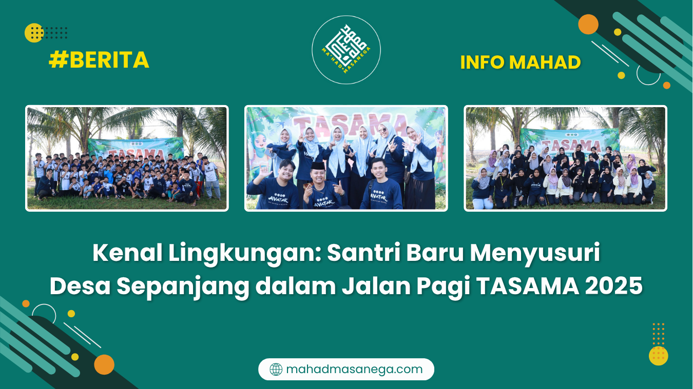 Masanega – Sabtu, 19 Juli 2025. Dalam rangkaian kegiatan Taaruf Santri Mahad Masanega (TASAMA) 2025, telah dilaksanakan kegiatan “Kenal Lingkungan” yang dikemas dalam bentuk jalan-jalan pagi menyusuri wilayah sekitar Desa Sepanjang. Kegiatan ini bertujuan untuk mengenalkan lingkungan sekitar Ma’had kepada para santri baru sekaligus mempererat ukhuwah antar sesama santri.