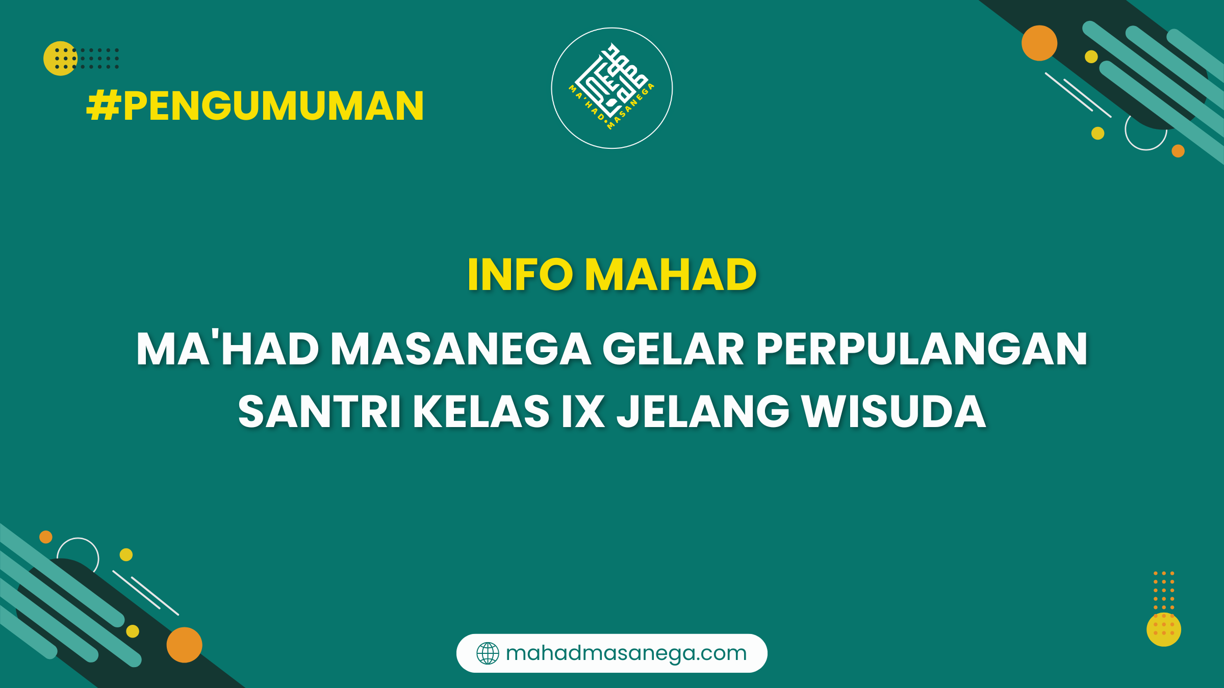 Masanega, 29 April 2025 – Menjelang pelaksanaan acara pelepasan peserta didik kelas IX, Ma’had Masanega memberikan pemberitahuan resmi kepada para wali santri terkait jadwal perpulangan santri.