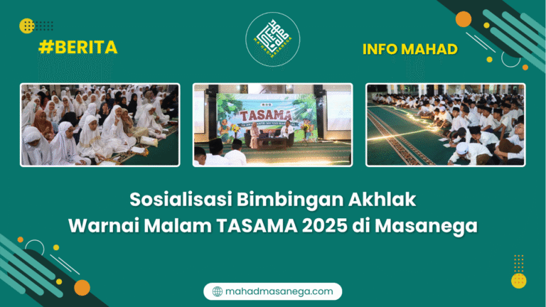 Selamat Datang Di Ma'had Masanega MTsN 1 Malang Selengkapnya NEWS UPDATE Informasi & Berita Terbaru All Posts Sabtu, 19 Jul 2025BeritaSosialisasi Ubudiyah: Bekal Santri Baru dalam Menunaikan Ibadah dengan TertibKamis, 17 Jul 2025BeritaSosialisasi Bimbingan Akhlak Warnai Malam TASAMA 2025 di MasanegaKamis, 17 Jul 2025BeritaTaaruf Mabna: Bekal Awal Santri dalam Menapaki Hidup di MahadRabu, 16 Jul 2025BeritaSosialisasi Bidang Kesantrian TASAMA 2025: Tegaskan Komitmen Disiplin dan Kejujuran SantriSelasa, 15 Jul 2025BeritaTASAMA 2025 Resmi Dimulai: Santri Baru Disambut, Semangat Baru DimulaiSenin, 14 Jul 2025BeritaSemarak Pra TASAMA 2025: Santri Baru Mulai Kenal Lingkungan dan Pengurus HISYAM Prev1 2 3 4 5 6 … 18Next
