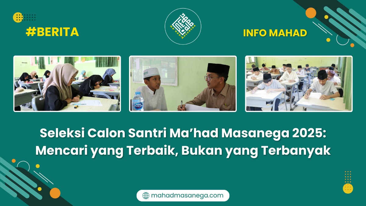 Masanega – Ahad, 25 Mei 2025. Ma’had Masanega sukses menggelar kegiatan Tes Penerimaan Santri Baru (PSB) pada Ahad, 25 Mei 2025. Kegiatan yang dimulai sejak pukul 07.00 WIB ini diikuti oleh sekitar 150 calon santri dari berbagai daerah.